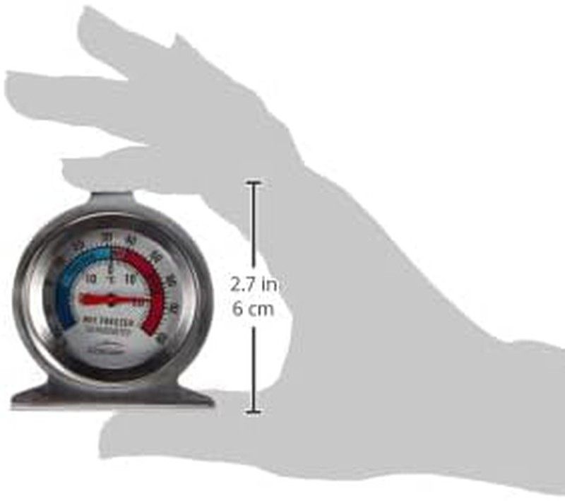 O termômetro da geladeira mede temperaturas entre -30 a 30 graus Celsius. É um termômetro analógico, ou seja, NÃO necessita de pilhas para funcionar. O termômetro de geladeira com base em aço inox garantirá o correto congelamento e conservação dos alimentos refrigerados. Quanto às sondas, não é necessário fazer furos no geladeira, o termômetro Possui base magnética, é colocado no corpo da geladeira próximo às duas portas.